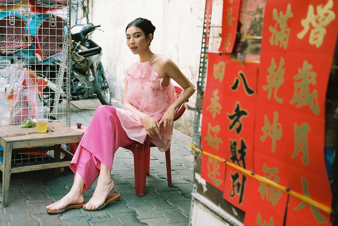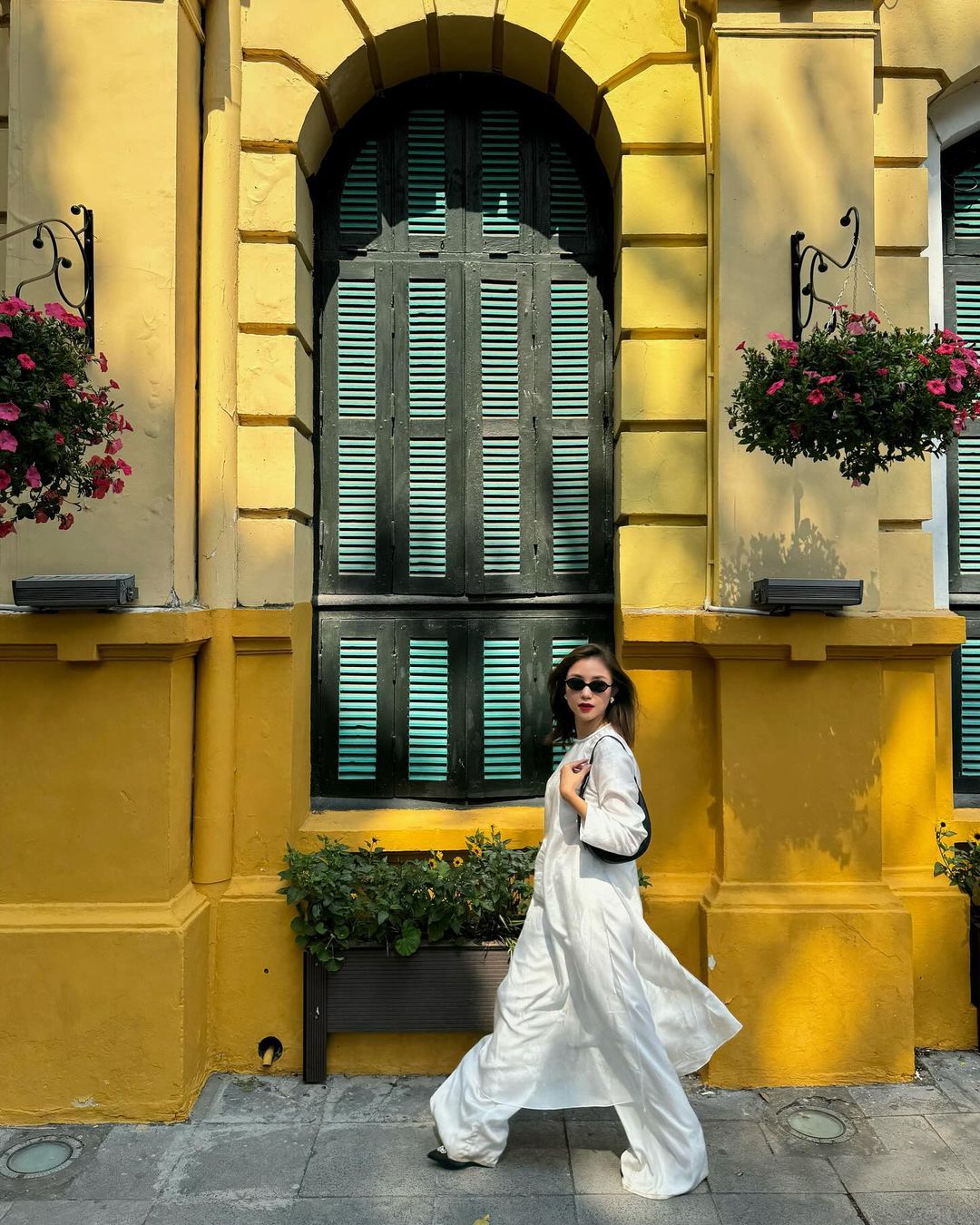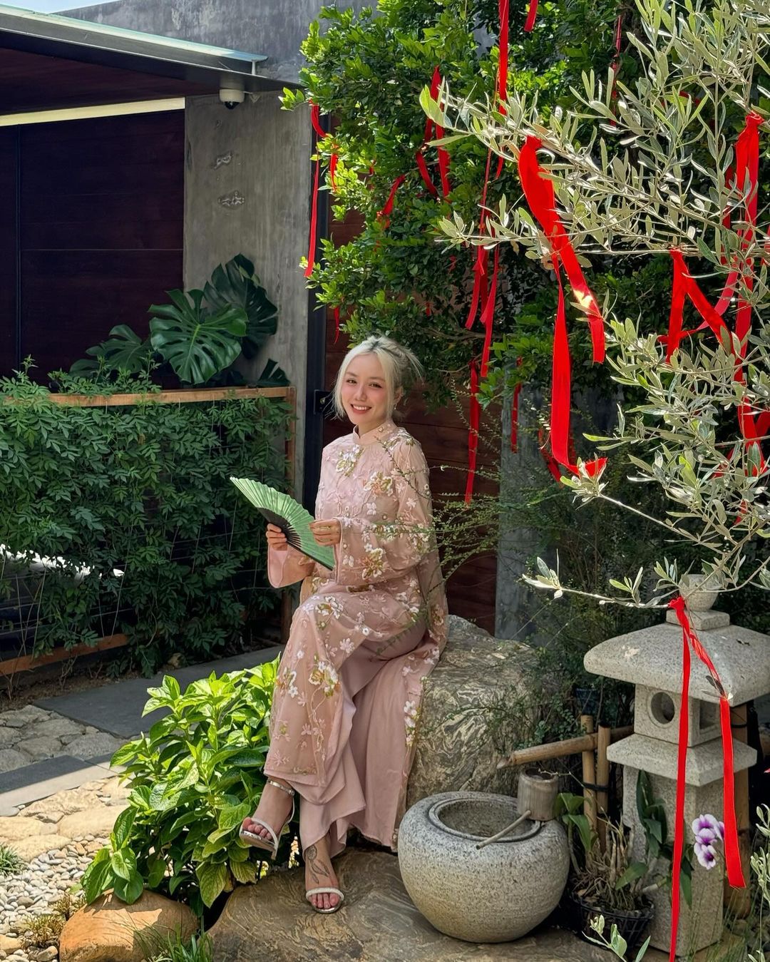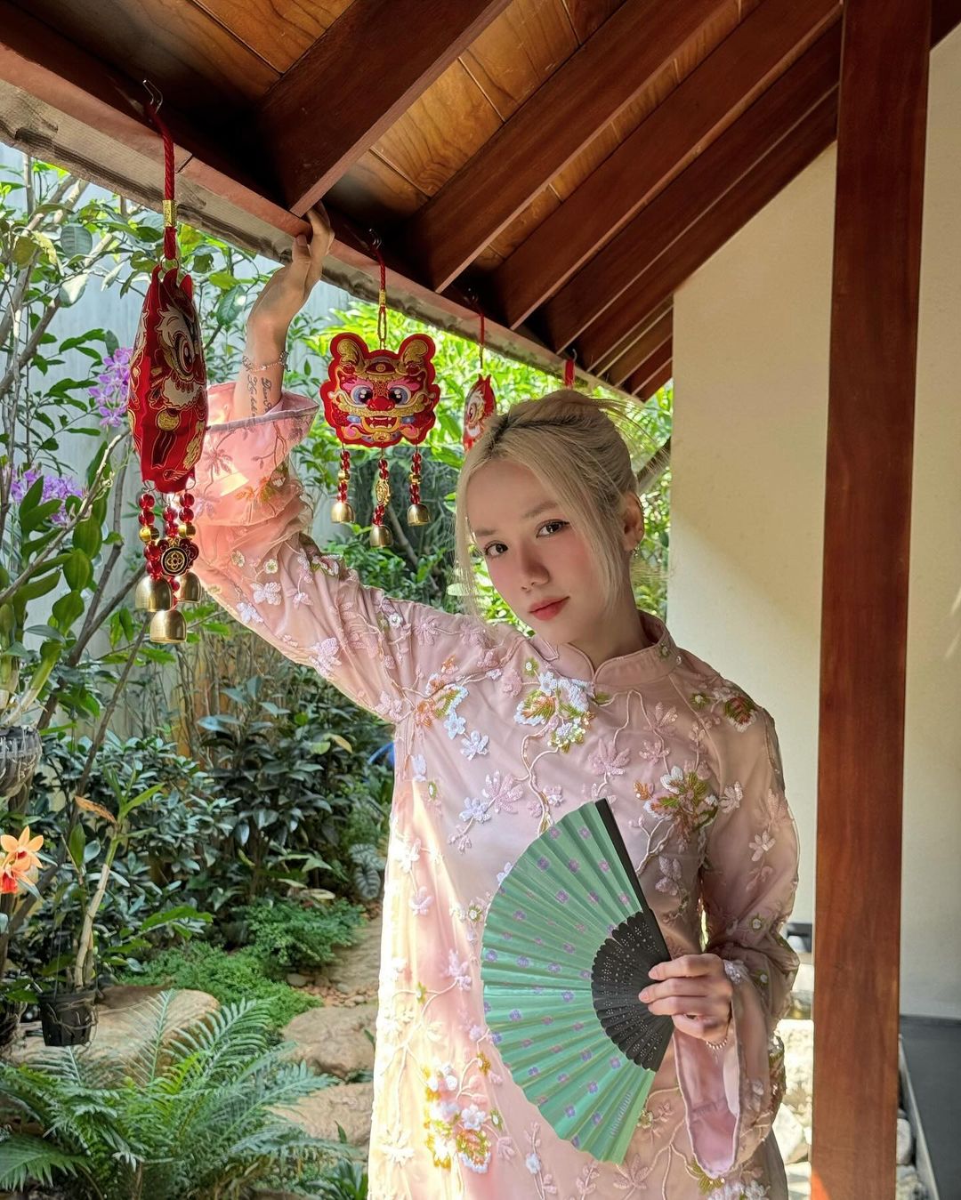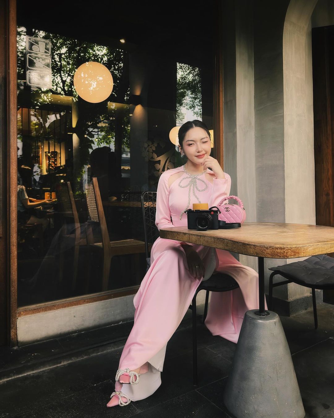 Chloe Nguyễn trong tà áo dài “coquette” nữ tính. (Ảnh: @bychloenguyen)